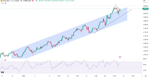 金价目前继续在通道上轨上方运行,周五早盘再次加速上行。若非农数据强劲可能暂时打压黄金多头,下方关注2830一线。反之,若非农符合或不及预期,金价有望继续冲击2900甚至3000美元。