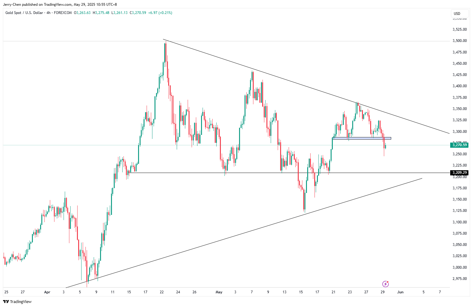 短期来看,金价处于高位震荡下行阶段,反弹若无法回到3285上方或继续承压,下方关注3180-3200区域的支撑。